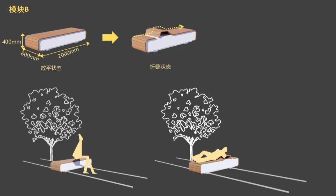为了满足居民们的诉求,让公园成为满足儿童玩耍、青年聚会、老人休闲等多场景的宝地,还要让大家保持对公园的新鲜感,我们花了大半年时间制定方案,最终决定以“移动椅子”作为创意载体以满足不同人群、不同季节的使用需求。