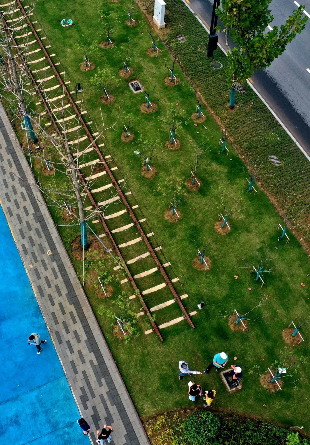 2020年9月,武昌生态文化长廊首开段建成,长江日报记者探访发现,路沿石就是五九铁路的老铁轨,公共座椅的基座就是枕木,处处可见“铁路元素”。