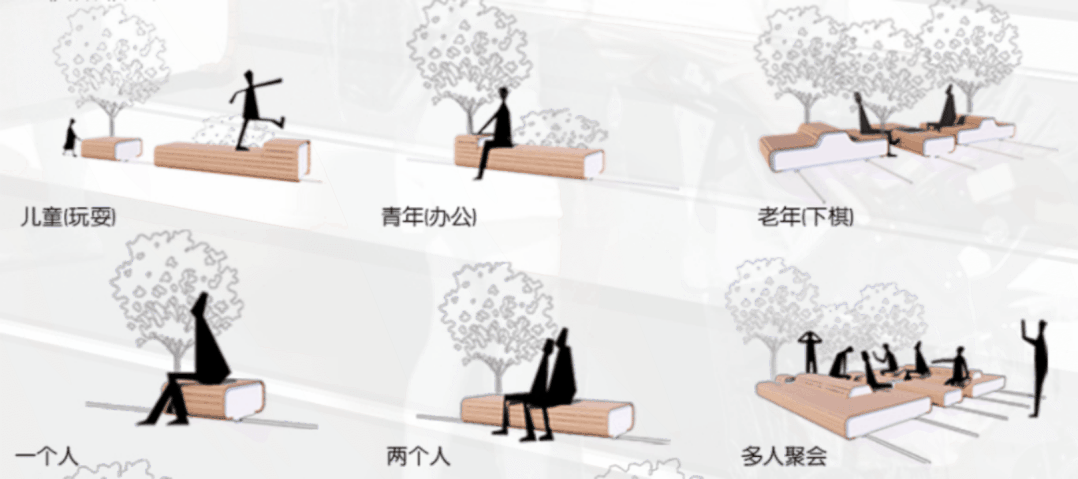 除了功能多样化,座椅本身也藏着很多设计“小心机”,根据施工建设图可以看到座椅共有三种类型:一种类似普通座椅,适合一个人静静地坐着看书;