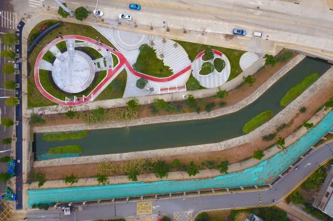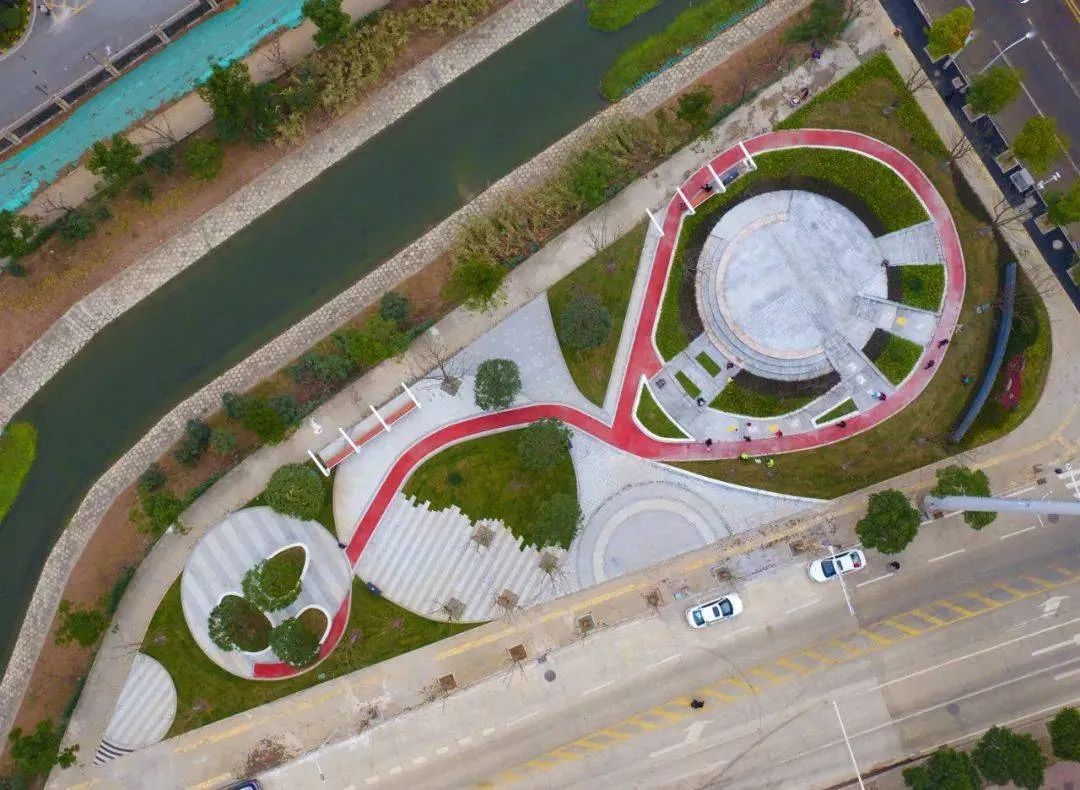 它紧挨塔子湖明渠,位于明渠水域与华盛路夹角的三角形区域,公园被划分为功能各不相同的“3个圈”活动区,分别满足户外活动、步道锻炼、休闲赏花等多种市民需求。