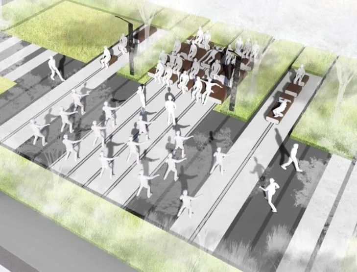 “椅子乐园”里各个座椅的组合形成了符合各个功能的停留空间,可以留住来去匆匆的行人,还能促进居民之间的交流。也许你下一次从这儿经过就会被不自主得吸引想来体验,目前该项目正在加紧施工建设中,计划年内建成开放。