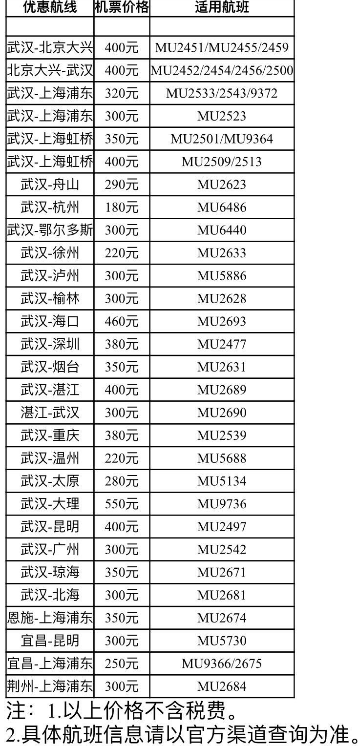 更多机票优惠信息可关注东航武汉公司官方公众号“东航武汉行”,旅客可通过东航APP、东航官网及各授权代理进行购买,具体信息请以官方渠道查询为准。