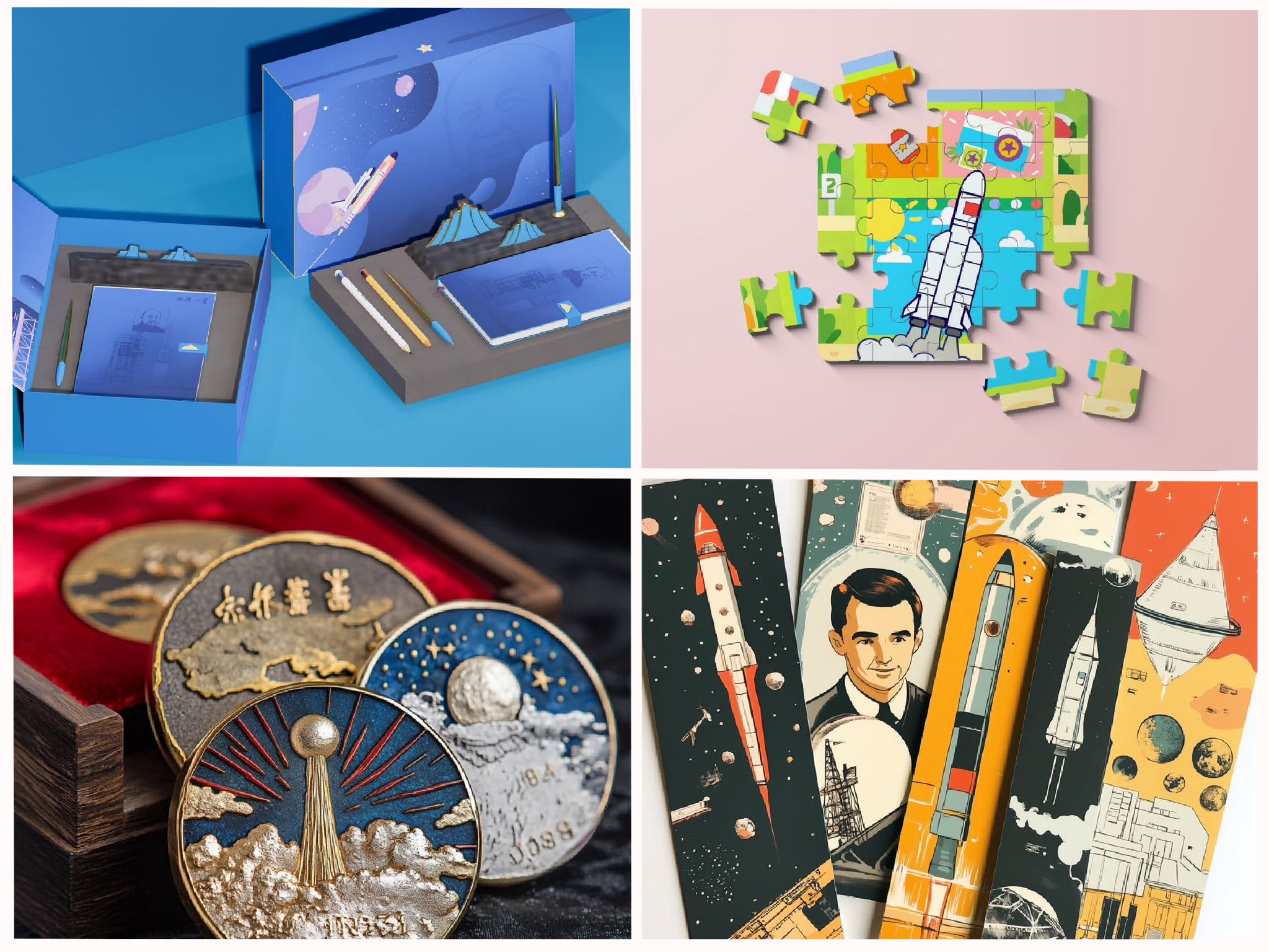 在开展宣讲活动的同时,宣讲团专门邀请了湖北美术学院工业设计学院杨艺、王莉莉两位教授担任“辅导员”,带领团队内产品设计、展示设计专业学生,基于“两弹一星”精神丰富的文化资源,开发了大量主题文创产品,以“沉浸式体验”推动“两弹一星”文化“可触式”延伸。