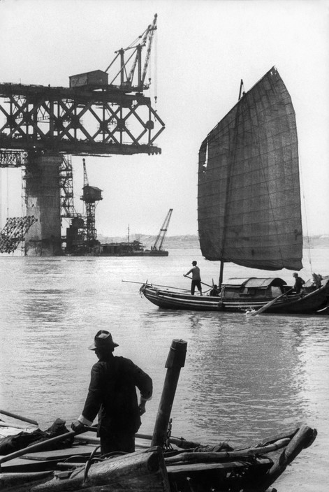 1957年工程建设后期的武汉长江大桥,法国摄影师马克·吕布在武汉拍摄