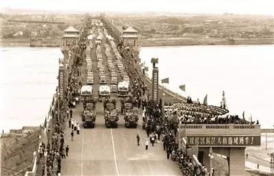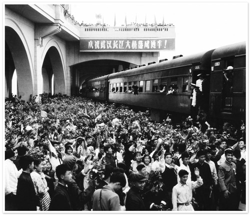 时任铁道部部长 滕代远:同志们,朋友们,武汉长江大桥今天正式通车了!这是我国人民在中国共产党领导下,实现社会主义建设的又一次光辉胜利!