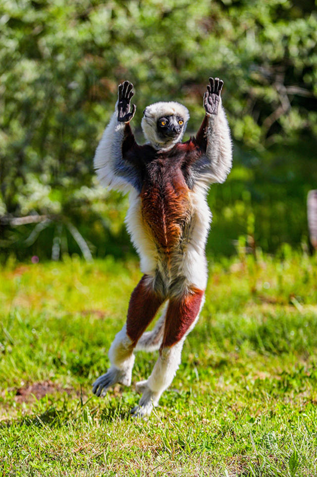 冕狐猴在地面上行走是蹦蹦跳跳的,有着特殊的“舞蹈天赋”。详见>>