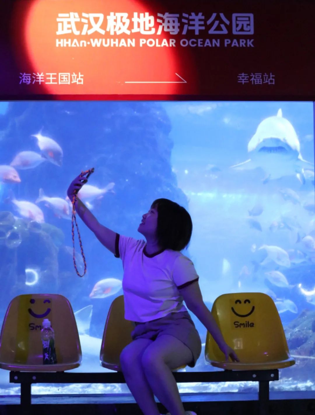 游客在武汉极地海洋公园海洋王国打卡。王锦 摄