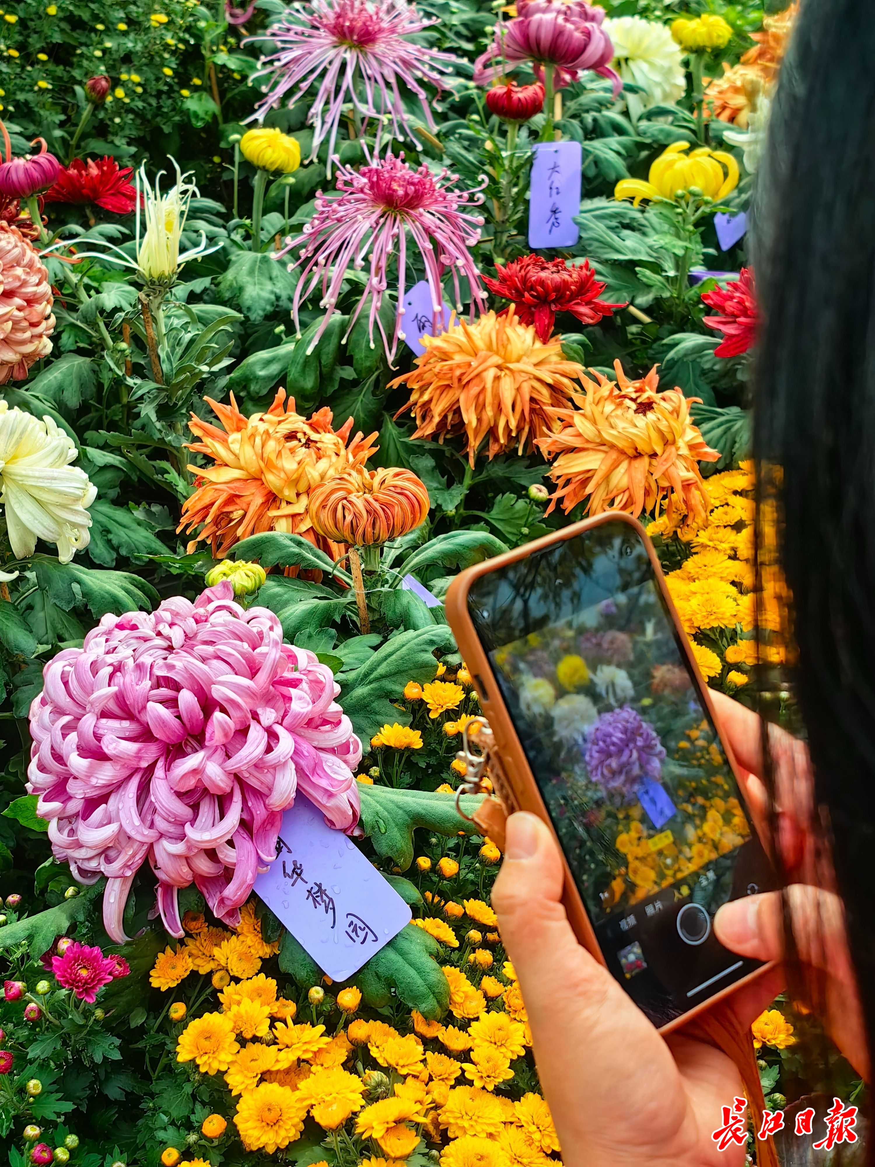 2020年,李江放弃做得风生水起的事业,拜父亲为师学养菊花,传承“盘龙”菊艺。目前,她负责打理的柏泉苗圃菊花基地,已收集全国各地菊花品种1200余种,每年生产菊花约5万盆。今年她养的1.5万余盆菊花正在中山公园、沙湖公园、汉口江滩、东西湖区月亮谷露营农场等展点展出。