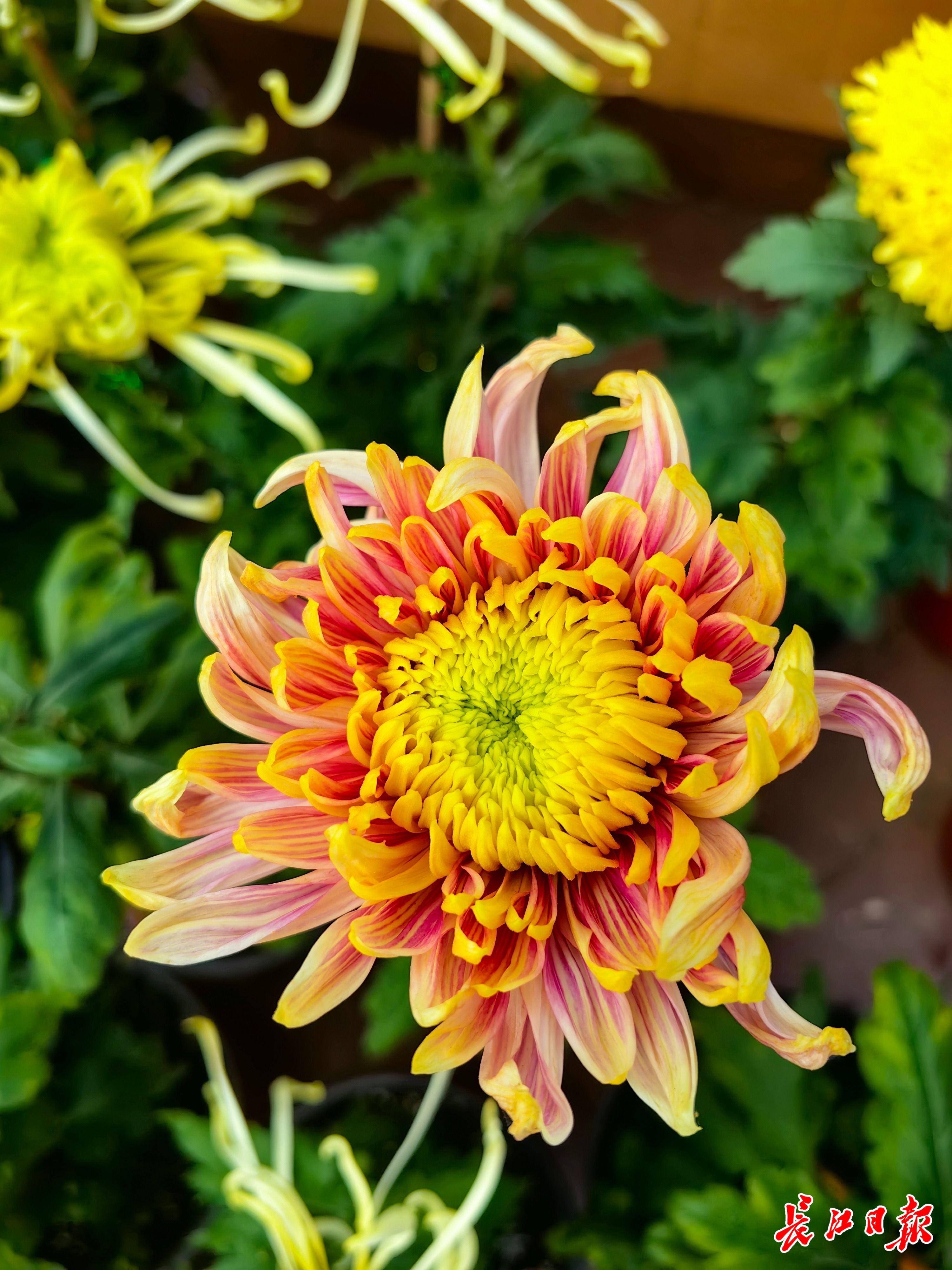 李江告诉她,“盘龙”系列菊花新品种“盘龙木兰”,以古代女英雄花木兰的名字命名,曾在全国菊展获得金奖。这个品种的花是复合颜色,有粉色、黄色、绿色三种颜色。它长得“眉清目秀”,但又有几分“英武”之气,所以取名为“盘龙木兰”。