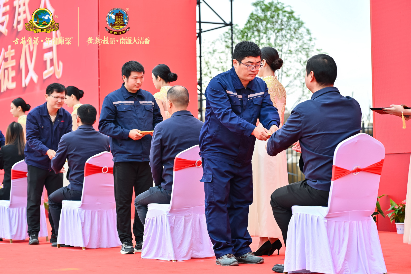 活动中还设置了一个重要环节——黄鹤楼酒·南派大清香酿造技艺传承人收徒仪式,10名优秀技术人员现场拜师,这标志着南派大清香匠心酿造技艺再次迎来新的传承人,他们将成为接力推动黄鹤楼酒高质量可持续发展的中坚力量。
