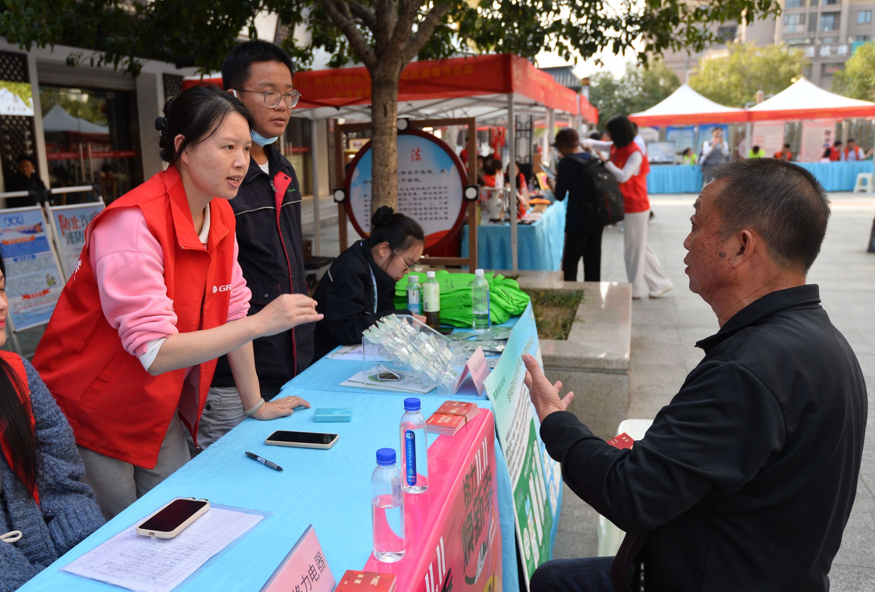 公益服务环节,中国电信演示智慧家庭产品。公安反诈宣传、社工站心理咨询、家电以旧换新、口腔健康咨询等全方位的便民服务给居民带来家门口的惊喜和福利。