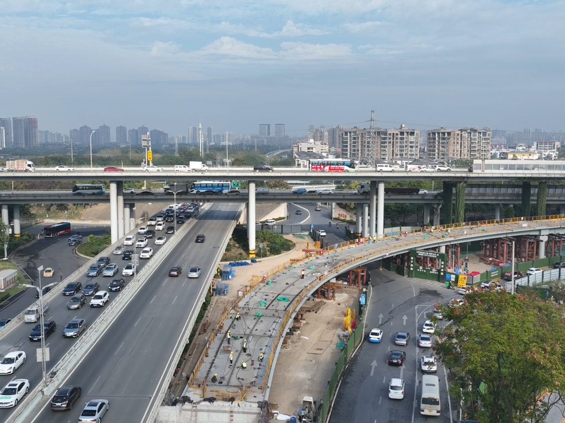 长江日报大武汉客户端11月14日讯 14日获悉,武汉三环线改造工程(常青立交—姑嫂树路)的340米长高架桥成功合龙。这一工程改造完成后,从汉阳经过宝丰路高架过来的车辆可从新建匝道直接右转进入三环线,通行更为顺畅。