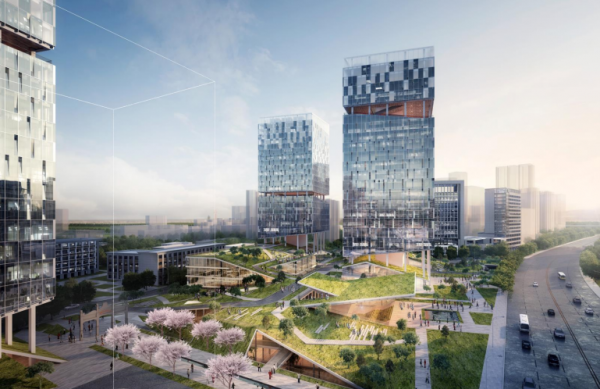 其中,企业应用中心约4万方,定位中大型规模高新科技创新企业,甲级标准具备研发功能的高品质办公楼,预留数据服务和实验室空间;科技交流中心约2万方,定位中高端的高品质科技交流会议中心;办公楼B创智服务中心约3万方,定位产业链上下游中小企业及专业服务机构;此外还有TOD商服中心,完善本项目商务商业配套服务空间。