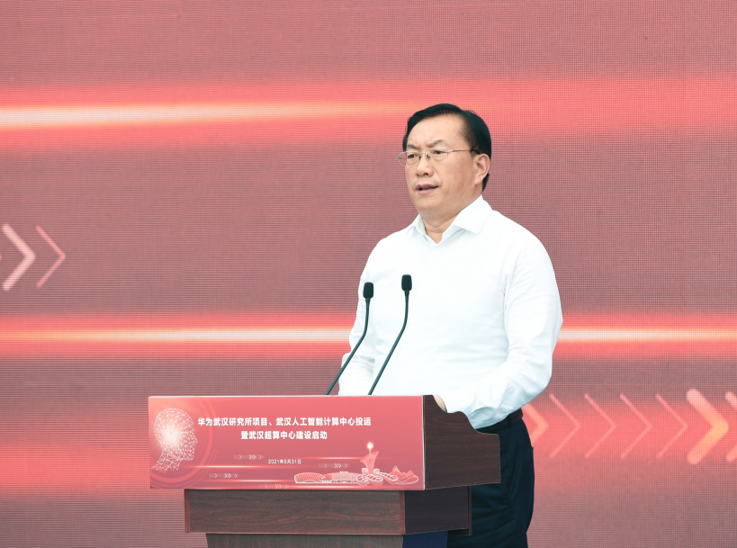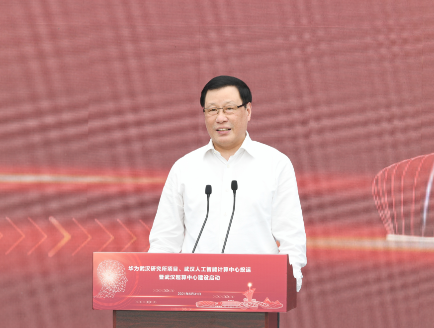 长江日报5月31日讯 5月31日下午,华为武汉研究所项目、武汉人工智能计算中心正式投运,武汉超算中心建设启动。湖北省委书记应勇宣布项目投运启动。省委副书记、省长王忠林,工业和信息化部党组成员、副部长王江平出席活动并讲话,华为技术有限公司常务董事、ICT产品与解决方案总裁汪涛致辞。