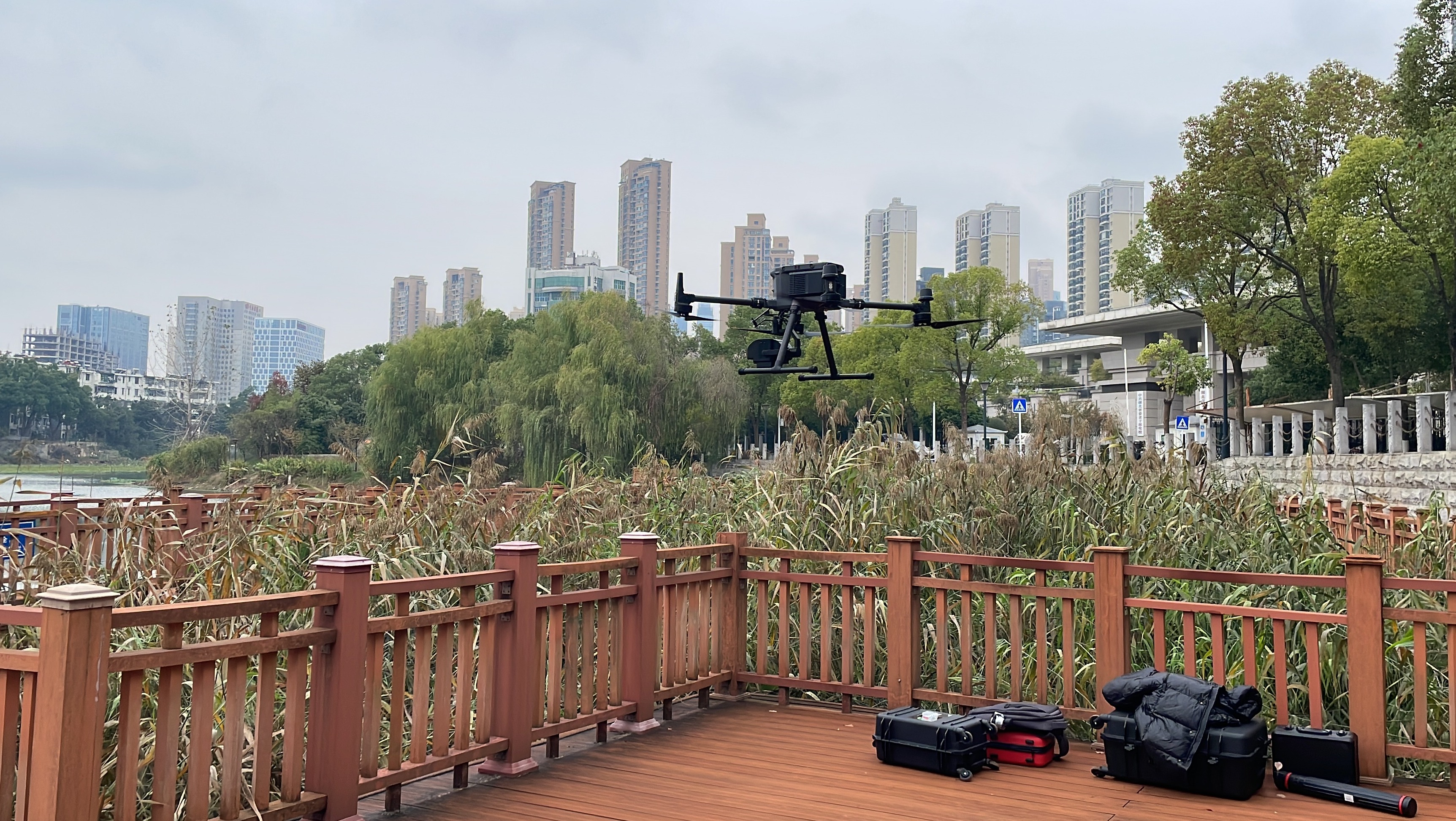 无人机搭载高光谱遥测系统,对天鹅湖水体进行“CT”扫描。通讯员涂芷墨 摄