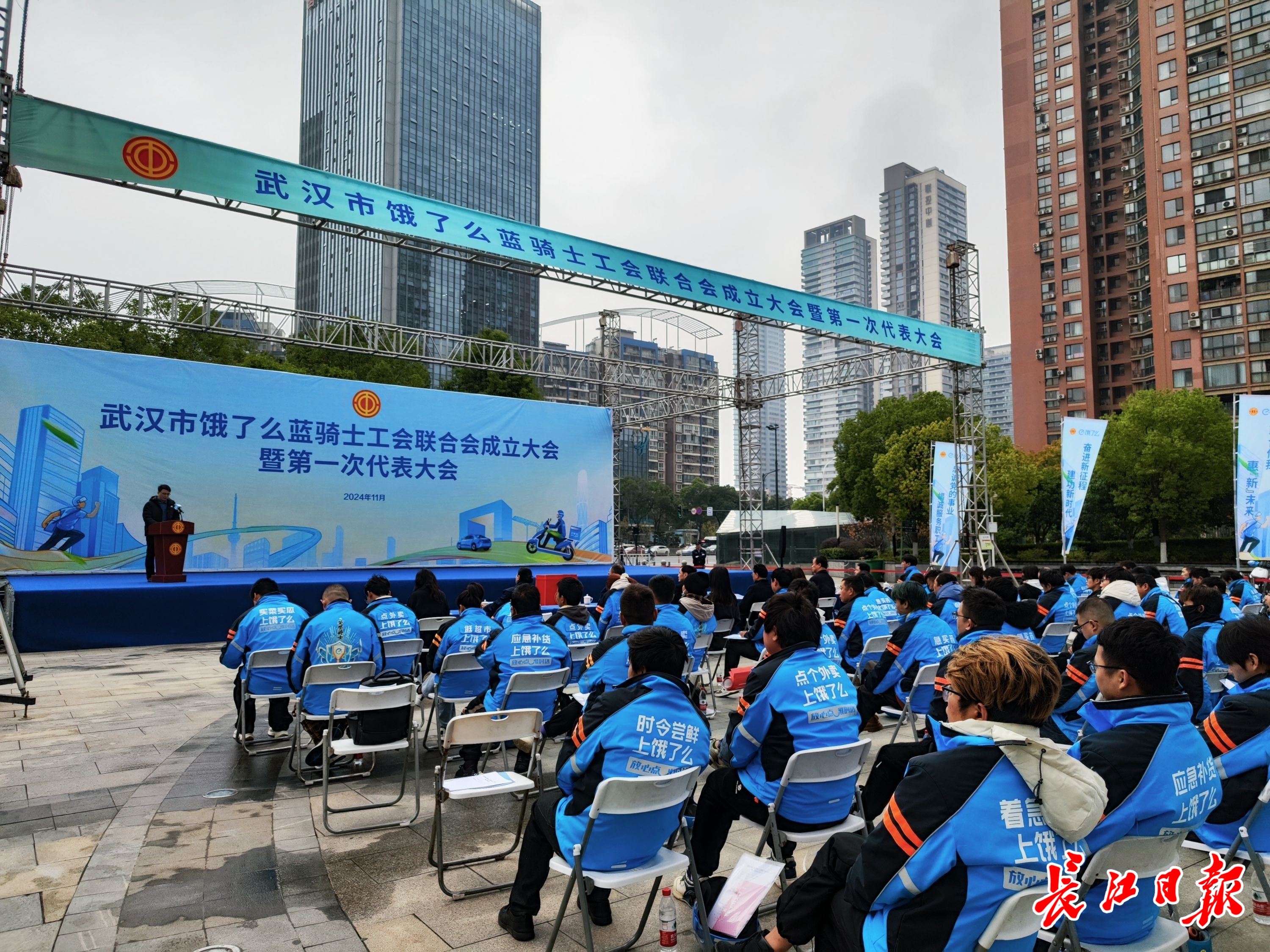 武汉市饿了么蓝骑士工会联合会成立大会现场。记者刘克取 摄