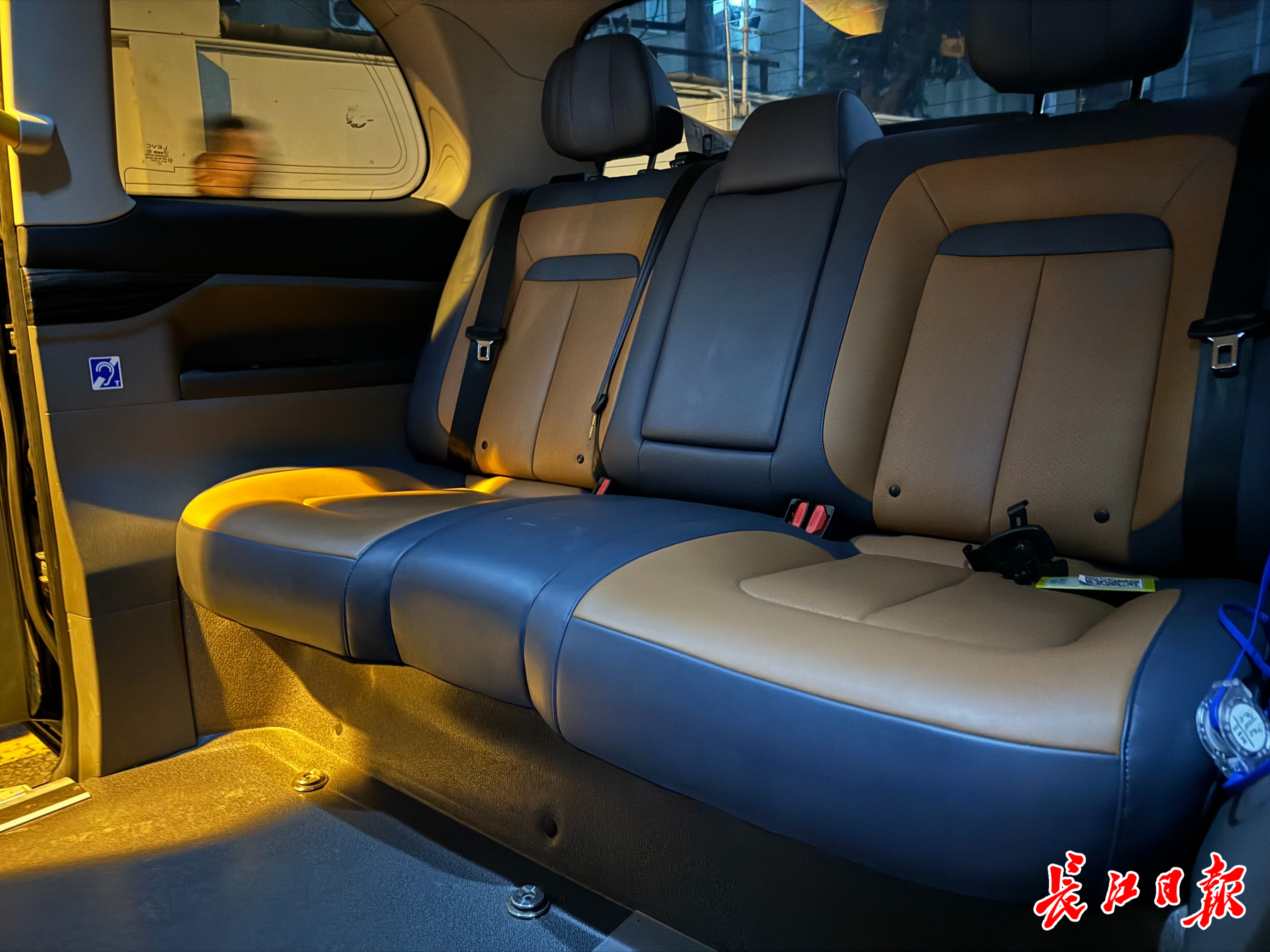 地板可以固定轮椅,车内空间大,陪乘人员乘坐也舒适。 记者陶常宁 摄