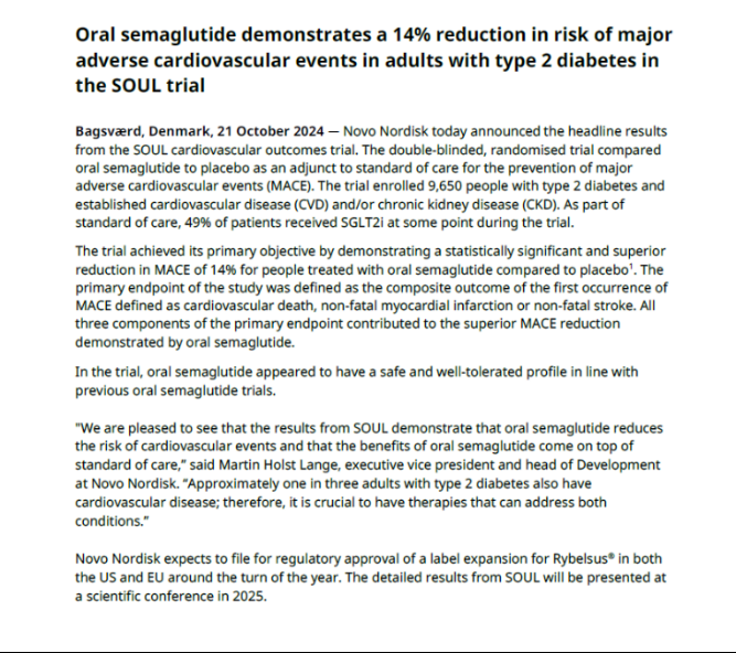 一、SOUL研究——全球首个口服GLP-1RA类药物心血管结局优效性试验