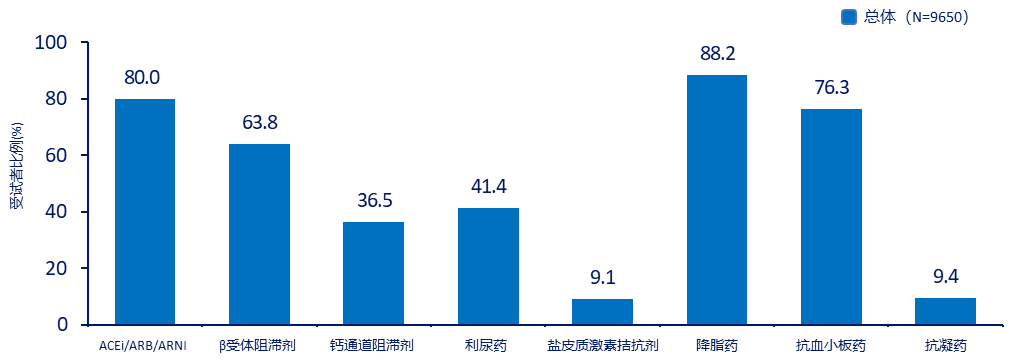 此外,入组受试者在基线时大部分已接受了包括降压药物、降脂药、抗血小板药、抗凝剂等在内的标准心血管药物治疗(图3)[1]。