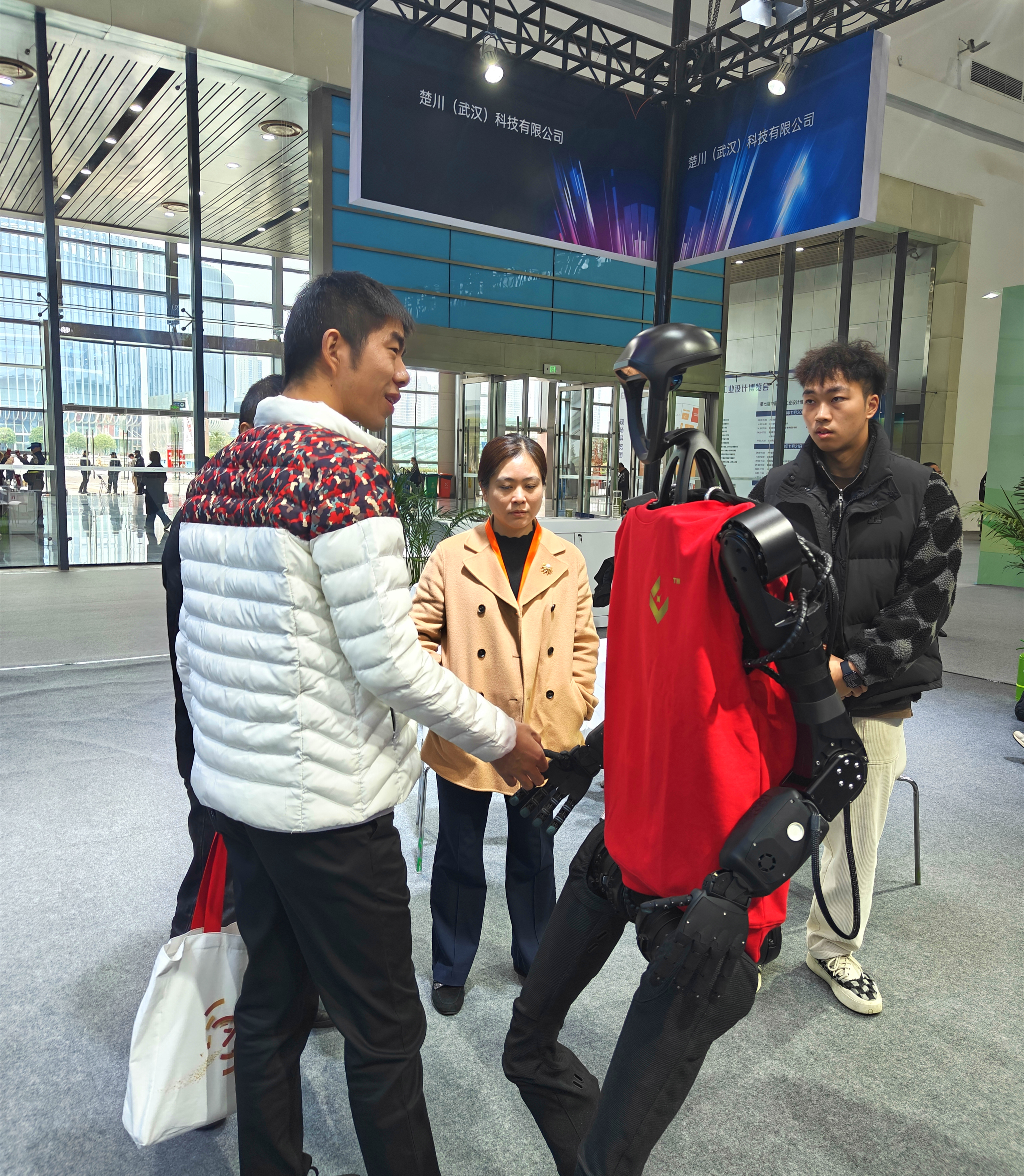 “人形机器人的最大关节扭矩达到360N·m,相当于一辆小汽车的扭矩,是目前全球关节扭矩最高的人形机器人。”现场工程师介绍,这一人形机器人来自楚川科技的合作方武汉京天机器人有限公司,该公司由湖北珞珈实验室孵化。