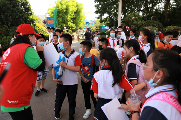 下午,孩子们兴致勃勃地来到武汉海昌极地海洋公园。正值旅游旺季,海昌极地海洋公园游人如织,在文旅志愿者的组织引导下,孩子们有序排队入园参观。