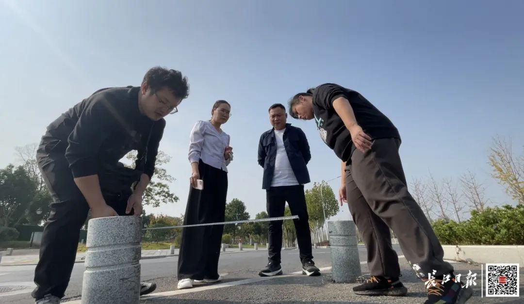 11月14日当天,区城管执法局牵头联系几家道路建设和施工单位到现场踏勘,对道路阻车桩设置不规范的问题进行自查自纠,并举一反三,逐一消除潜在的安全隐患。