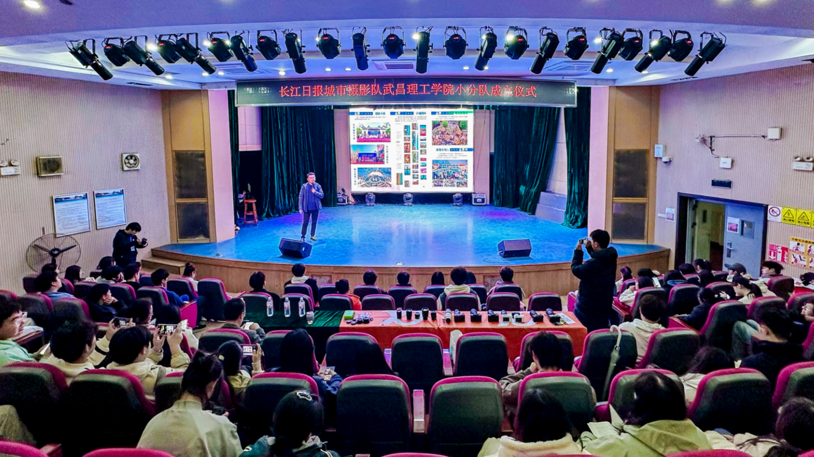 在活动现场,长江日报城市摄影队负责人陈亮以“如何让影像有影响”为主题,向学生们展示了《中国速度》《凌晨四点的武汉》《湿地乐章》《战阵》《我为城市跳支舞》等影像作品,他建议大学生摄影创作中切勿“舍近求远”,可以聚焦自己的校园,城市生活,发现校园之美,为校园发声,为城市发声。他表示:“城市影像,或将成为城市的流量密码!”
