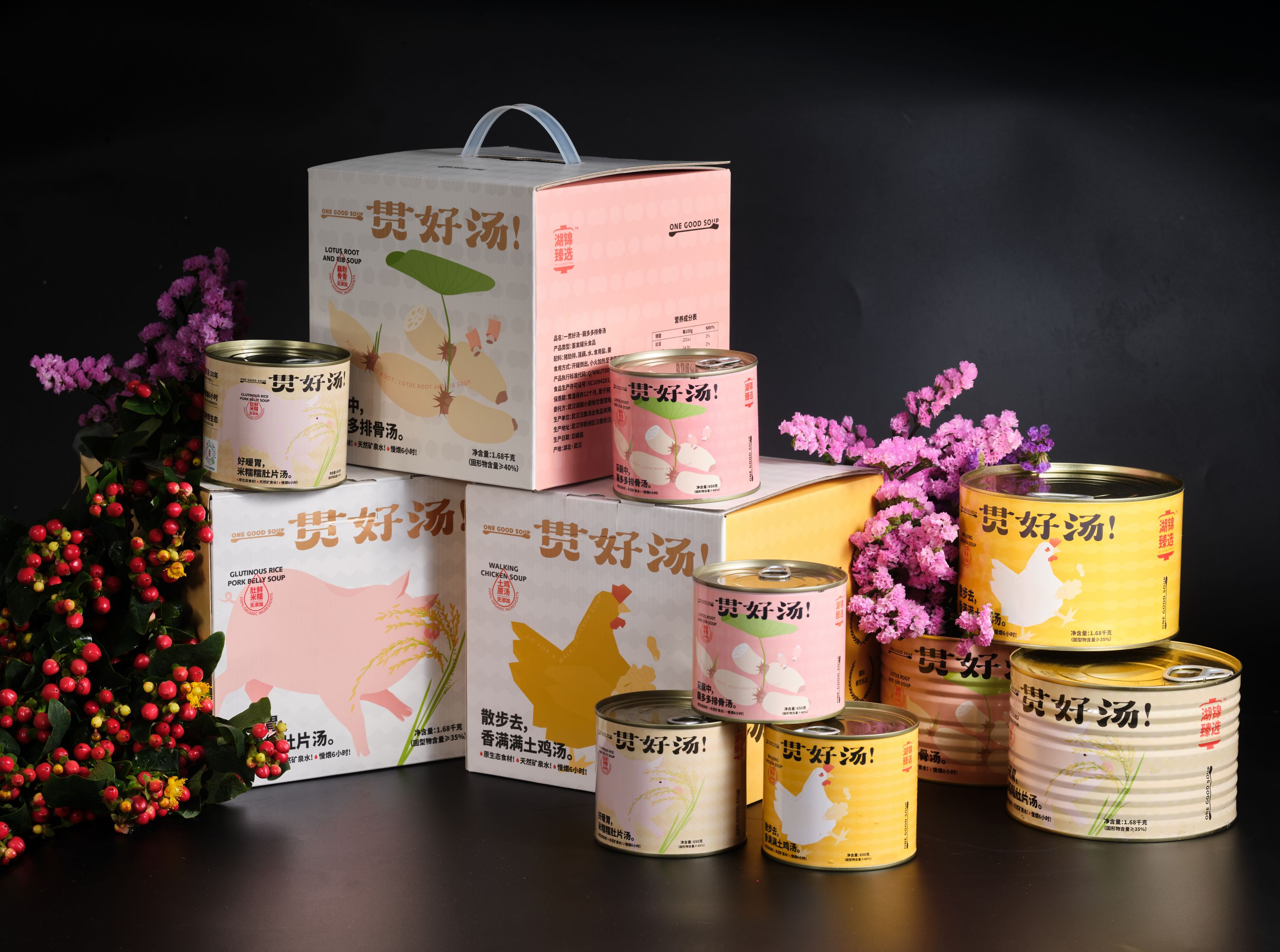 湖锦的伴手礼,锁鲜包装的藕多多排骨汤由湖锦酒楼中国十大名厨、中国烹饪大师担当首席产品经理,亲自参与到制作的每一个环节,通过现代工艺,还原了传统煨汤技法的口感,配料干净,只有食材本身。再采用马口铁罐物理密封保鲜。从经验到精确控制,确保每一罐汤的品质优异和稳定,也真正实现了可以打包带走的藕汤。而在外包装上,锁鲜包装的藕多多排骨汤突出食材属性,结合食材特性创作手工插画,并在礼盒上融入武汉城市元素文化。