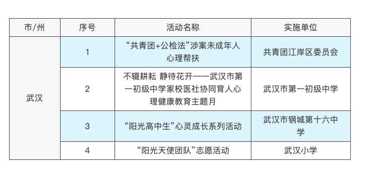 根据省文明办、省教育厅、省卫健委、团省委、省妇联、省民政厅、省关工委《关于组织第二届湖北省未成年人心理健康教育宣传月活动的通知》,为总结各地未成年人心理健康教育中涌现出的好经验好做法和有益探索,省文明办在宣传月期间组织开展了未成年人心理健康辅导特色活动、优秀心理辅导老师及校园心理剧征集活动,经各地择优推荐、组织专家评审,最终评选优秀未成年人心理健康辅导特色活动30项、优秀心理健康辅导老师50名、优秀校园心理剧30部。