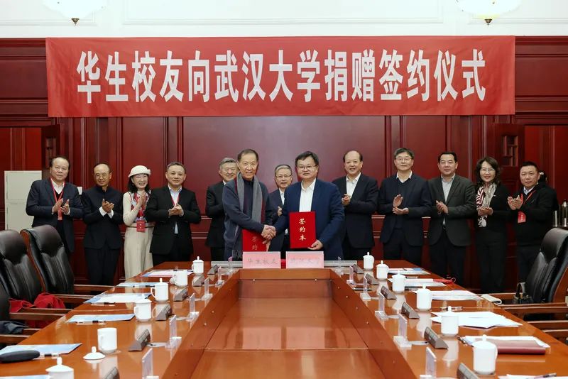 当天下午,华生校友捐赠签约仪式在武汉大学行政楼一会议室举行。张平文与华生校友签署捐赠协议并颁发捐赠证书。