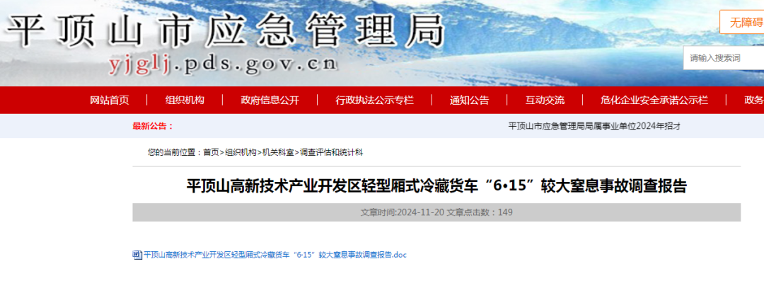 日前,平顶山市应急管理局公布该起事故调查报告,经调查认定,平顶山高新技术产业开发区轻型厢式冷藏货车“6·15”较大窒息事故是一起因轻型厢式冷藏货车挂靠公司未落实企业主体责任,对挂靠车辆缺乏有效管理,车辆驾驶人违法违规使用厢式冷藏货车载人、人货混装运输,属地有关部门专业监管和行业管理失职缺位,地方党委政府安全领导责任落实不到位而造成的较大生产安全责任事故。