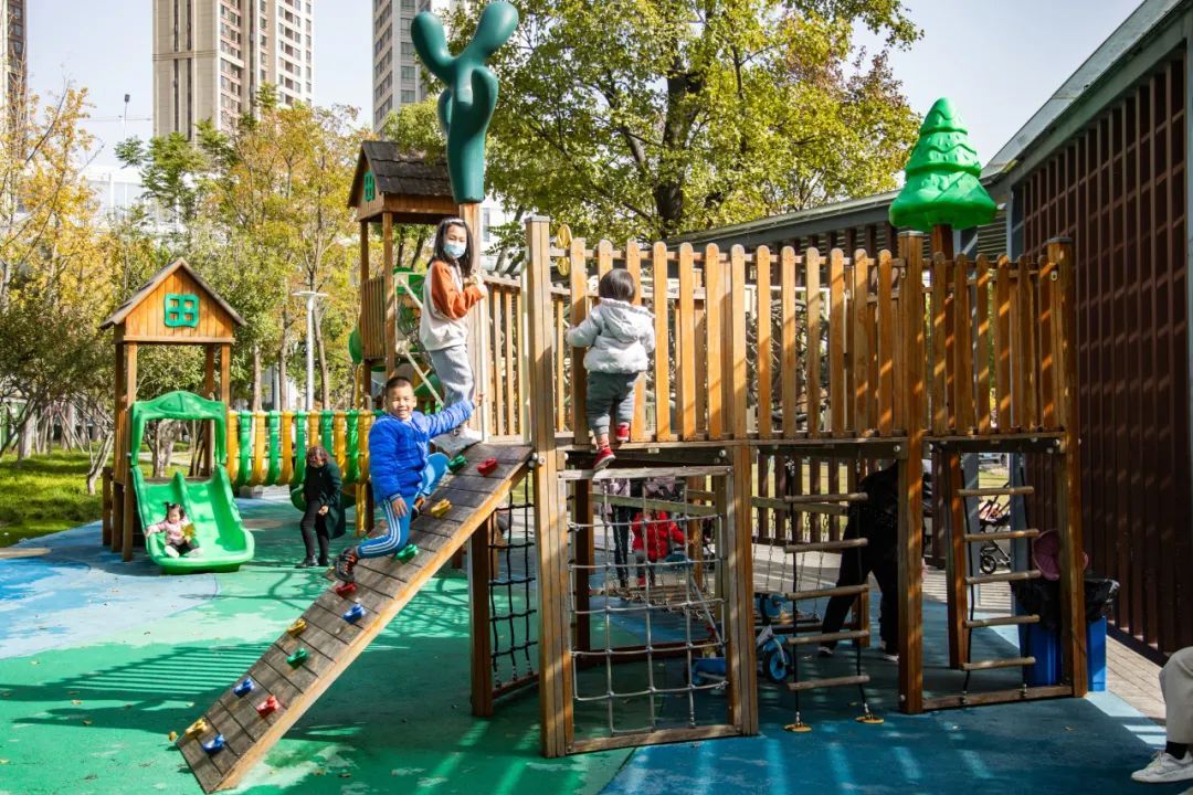 5000余平方米的游园,栽满了棠梨树,延续曾经“姑嫂种树”,为行人遮阴的美谈,木质结构的游乐设备、休闲连廊的设计,给周边居民提供了遛娃、娱乐的场所。几年前,姑嫂树游园还是一片荒地,堆满了建筑废墟、生活垃圾,如今,摇身一变,成了“绿荫聚合邻里,花芳融汇情谊”的街边游园。如今,开阔的阳光草坪上点缀棠梨树、主题廊架旁搭建儿童乐园,这里再没有居民对于环境脏、乱、差的投诉,只余祖孙园中玩耍、居民闲时休憩。