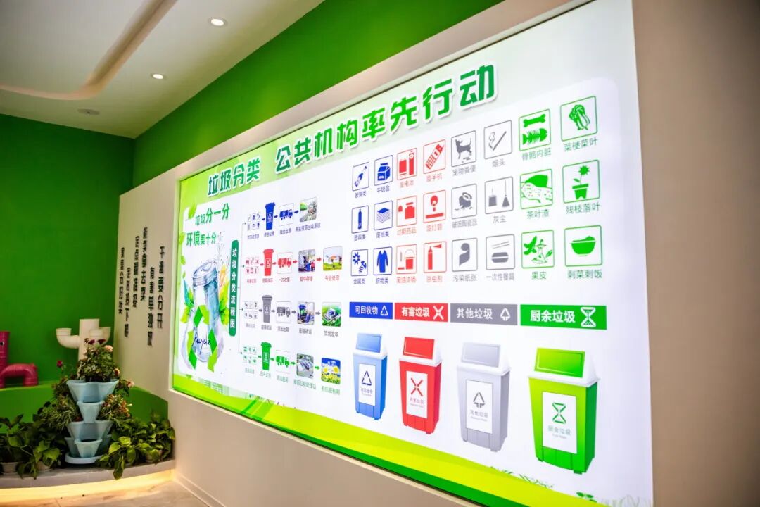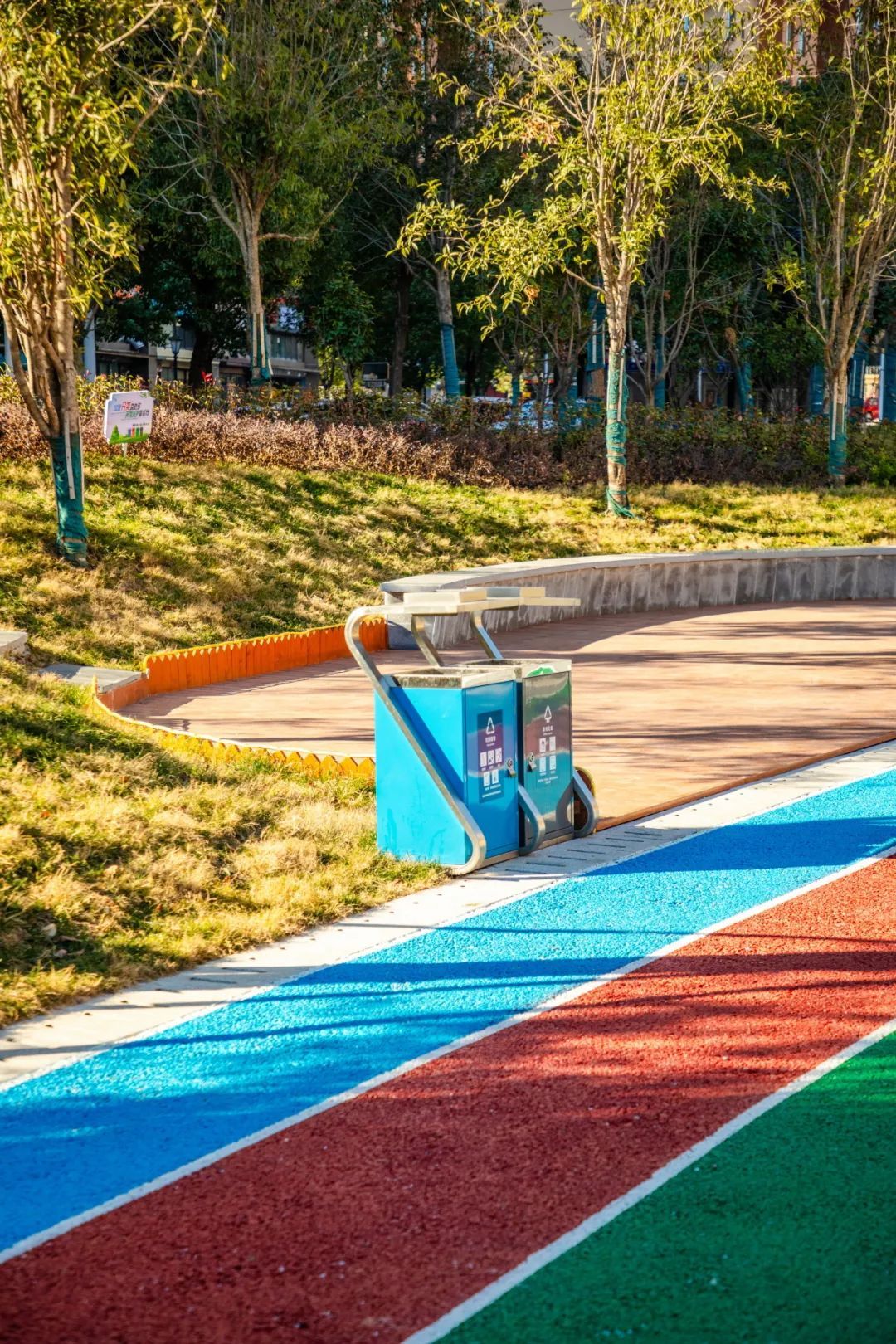 在设计之初,江汉区便秉持“寓教于乐、因地制宜”的理念,将垃圾分类元素融入自然景观,因地制宜,让公园在绿美环境中成为垃圾分类知识宣传的前沿阵地。低碳生活体验馆、以垃圾分类为主题的四色跑道、垃圾分类猜猜猜小游戏、垃圾分类智能设施,让“自然友好型”垃圾分类理念完美融入公园环境,兼具创意、美观。