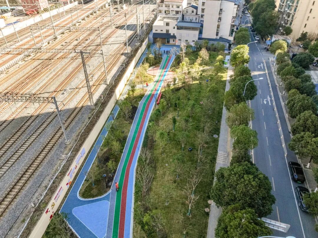 而如今,漫步在游园内蜿蜒的步道上,目光所及之处皆是绿意,缤纷艳丽的花卉,在其间竞相开放,旧轮胎制作而成的各类景观小品、铁路安全和爱国教育墙画分布在公园之内,赋予了城市别样的生机。“以前我们路过这里时,垃圾遍地,现在绿意环绕,还可以更好地了解垃圾分类知识,很不错!”看着眼前的变化,家住站东社区的居民张阿姨眼角总是流露笑意。