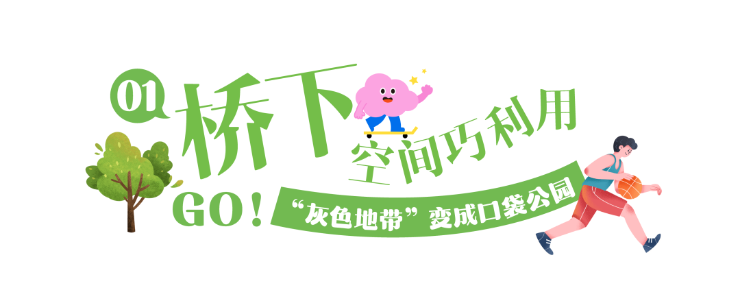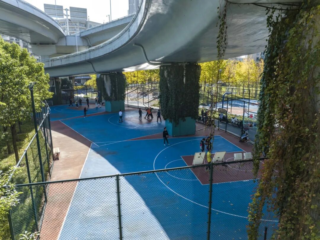 桥下空间与每个人的生活都息息相关,必须用好这些“灰色空间”,循序渐进、逐个打通,以此来实现城市品质的不断提升。在改造过程中,江汉区充分利用桥下空间植入艺术符号,将现代公园理念融入口袋公园建设中,对植被做减法,腾出更多活动空间,展现开放包容的文化气质。在立交桥正下方,修建了3个半场篮球场、1个整场篮球场、1个儿童游乐场、1个老人健身区和1个4000平方米的活动广场,让复兴体育公园成为老中青三代人的“快乐星球”。