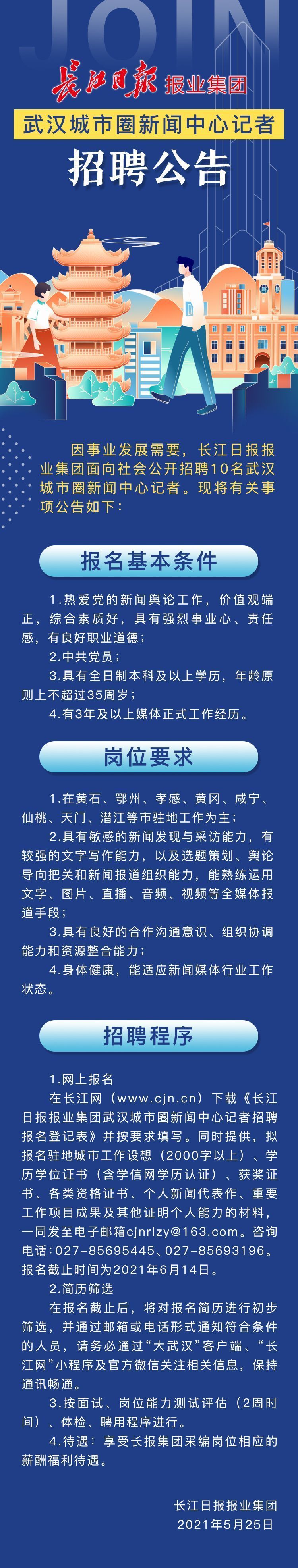 如果你热爱党的新闻舆论工作,是中共党员,有3年及以上媒体正式工作经历,愿意在黄石、鄂州、孝感、黄冈、咸宁、仙桃、天门、潜江等市驻地工作,那快来报名吧。