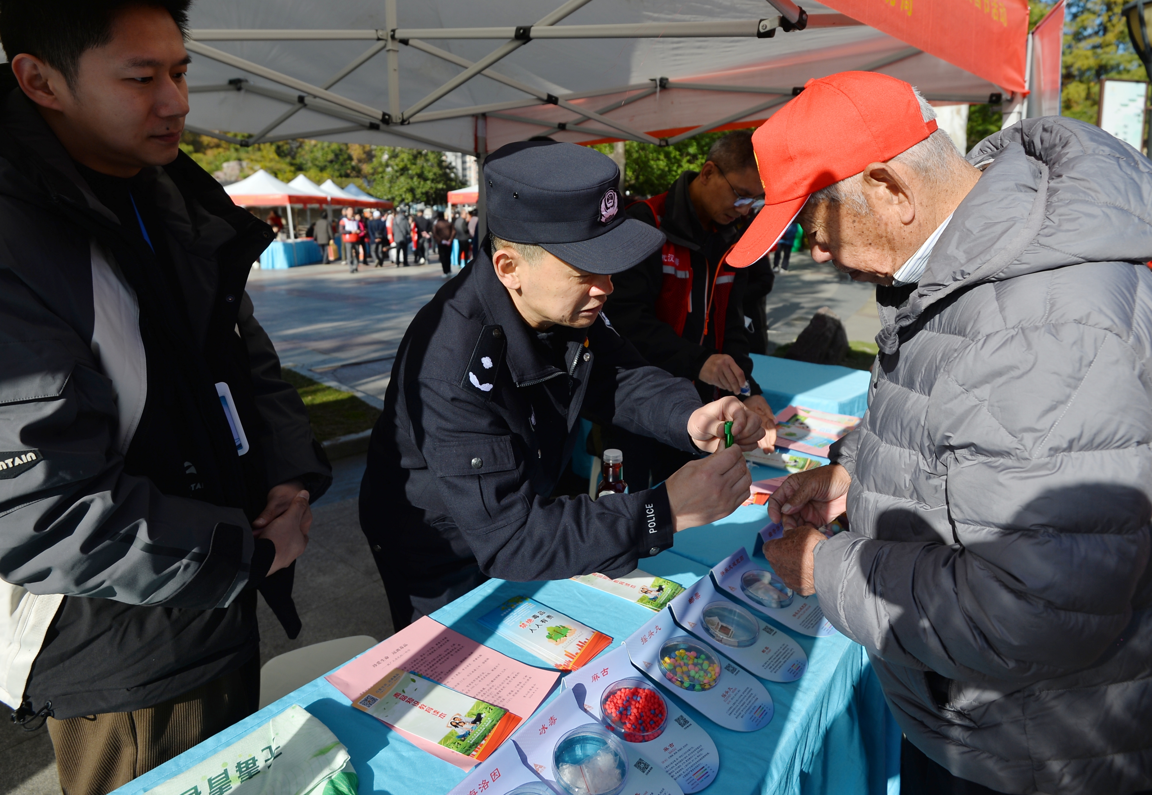 青山分局民警在活动现场进行禁毒宣传。