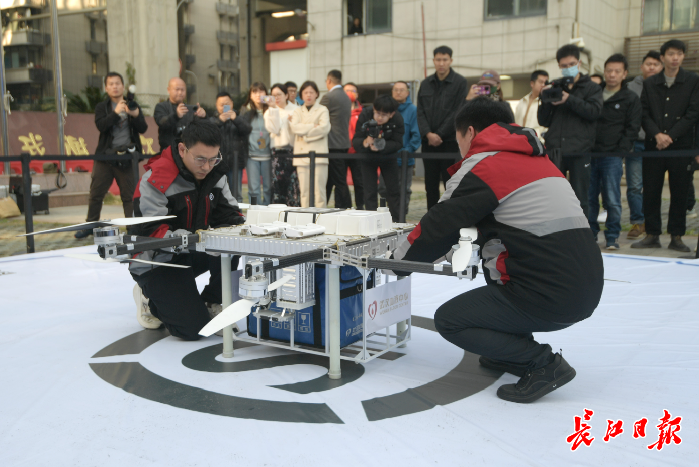 上午10时24分,无人机载着800毫升血液跨越11.1公里,顺利抵达武汉亚心总医院停机坪。