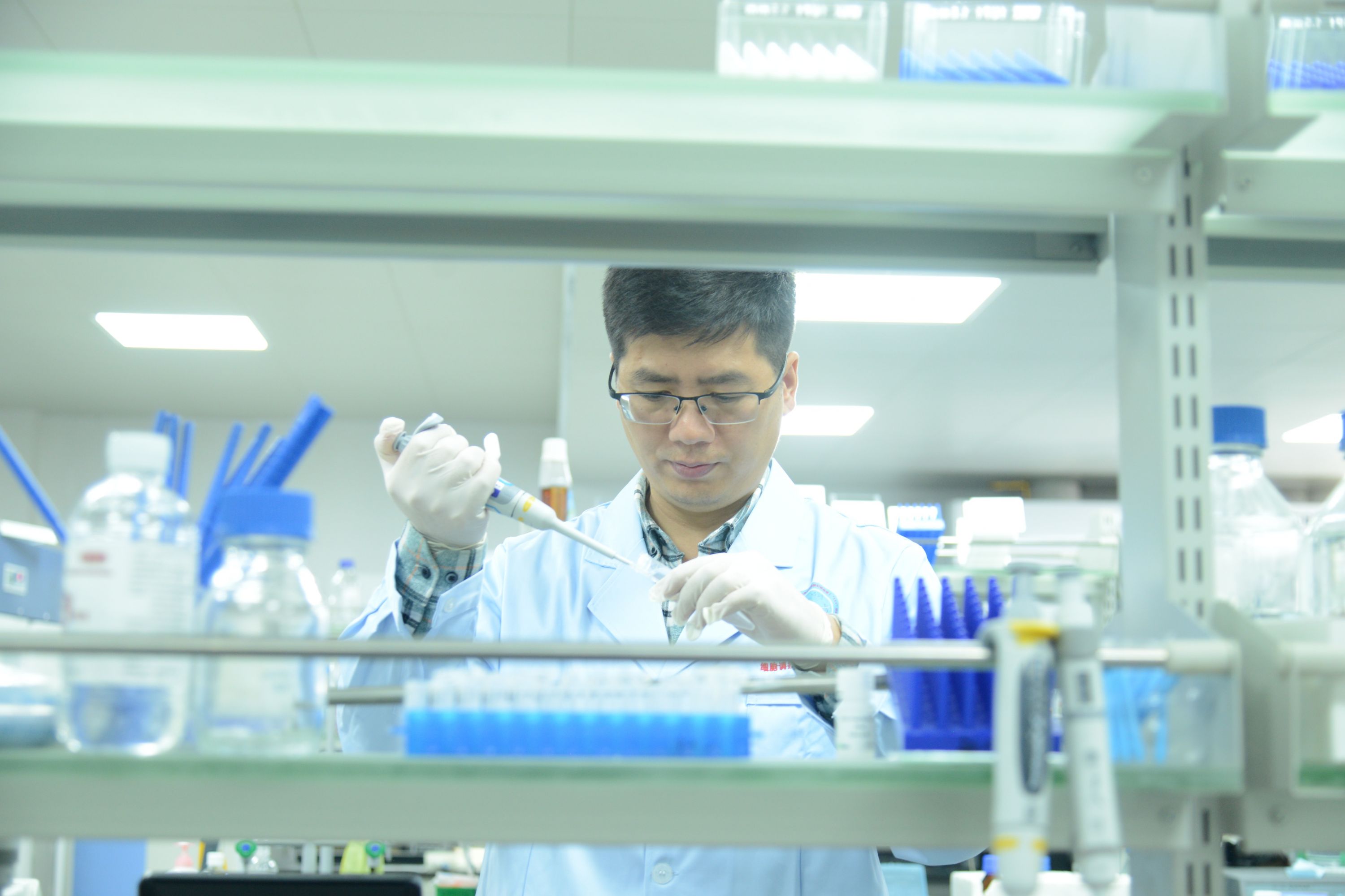 唐景峰在实验室。