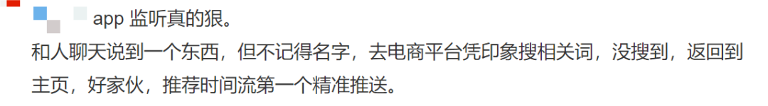 网络讨论度居高不下,日常生活中也是随处可见。北京市民黄女士向媒体反映,她跟朋友聊天中,刚讨论购买什么种类口红,下一秒打开手机上某购物网站,首页就弹出一些口红产品推荐。这让她难以理解,购物网站怎么“听”到他们对话内容。她感觉被人“偷窥”了。山东泰安王先生也称,其亲属和同事在家谈论某个商品,之后在购物网站就会推送相关产品广告。他表示曾听到过很多类似情况,疑似手机有窃听功能。在黑猫投诉平台,记者检索“手机偷听”“手机窃听”“手机监听”等关键词,投诉量超上百条。