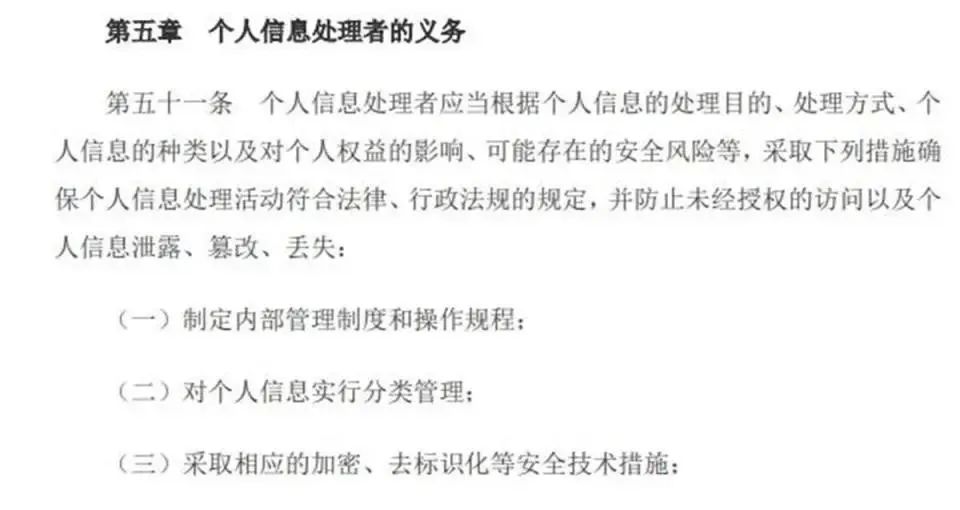 同时,在《中华人民共和国数据安全法》《中华人民共和国网络安全法》以及《中华人民共和国个人信息保护法》中,都对数据安全的保障做了相关规定。其中,在《中华人民共和国个人信息保护法》中明确提到,个人信息处理者应当根据个人信息的处理目的、处理方式、个人信息的种类以及对个人权益的影响、可能存在的安全风险等,采取相应的加密、去标识化等安全技术措施。