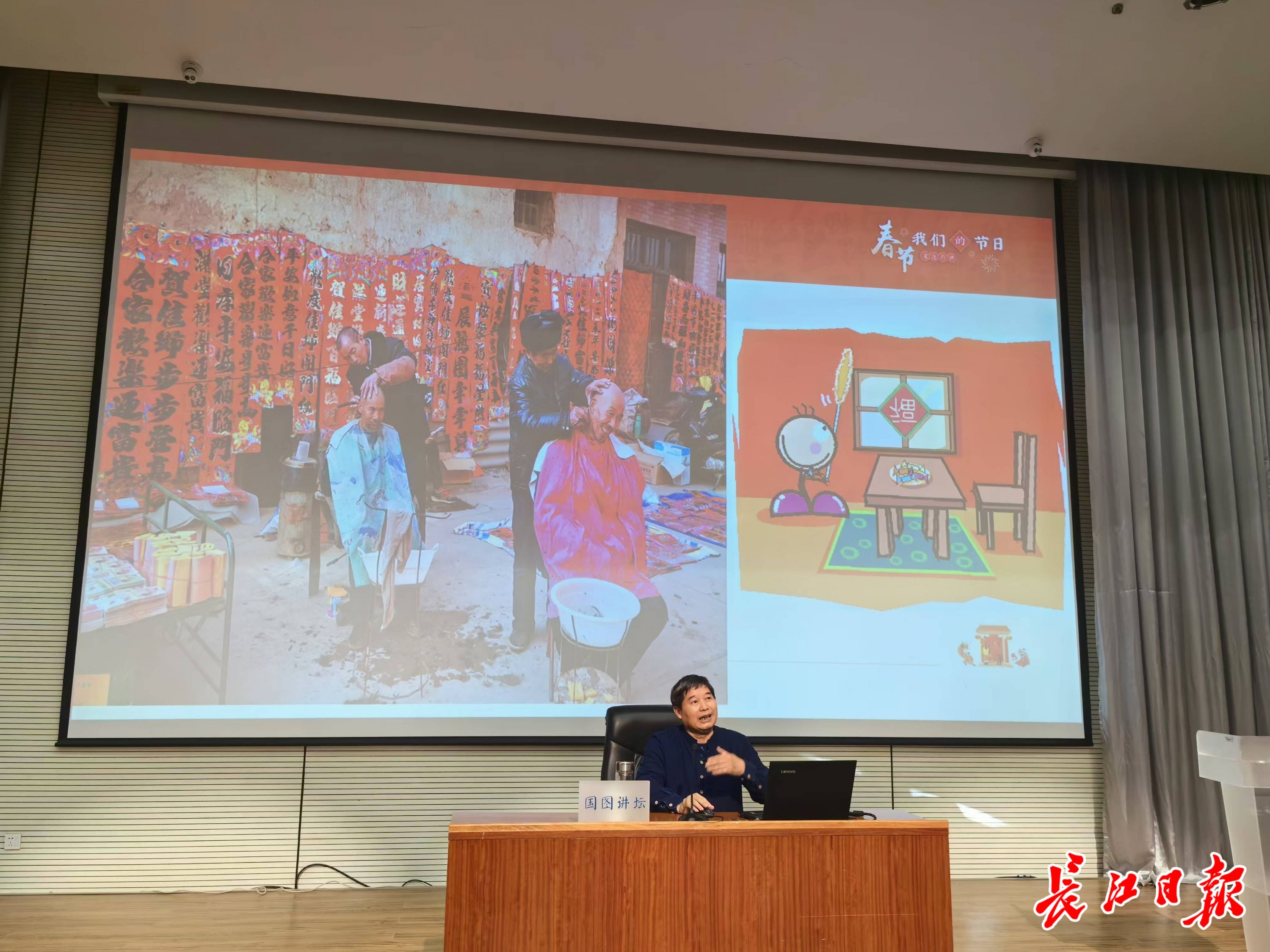 中国民俗学会副会长萧放教授在国家图书馆作春节专题讲座。记者柯立 摄