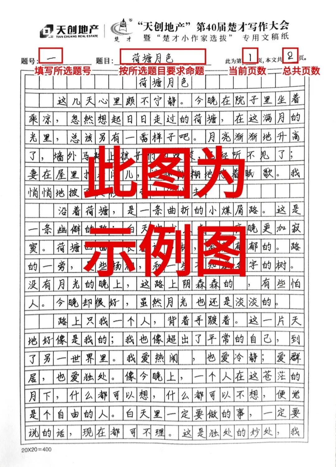 写作完成后再进入“楚才少年”微信小程序,按照页面提示上传作品图片。(提交作品通道将于12月8日开启)