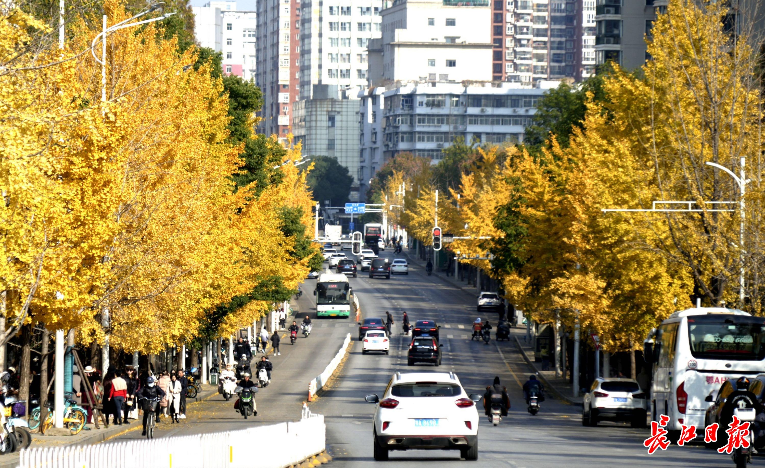 初冬银杏金灿灿 ©原创 2024-12-08 16:46 0 12月8日,武昌首义路至武昌起义门沿线路段上的银杏树枝叶交织,阳光透过稀疏的叶片洒下斑驳陆离的光影,宛如金色长廊,吸引了众多市民来此漫步,拍照留影,享受冬日暖阳。 (长江日报记者何晓刚 摄影报道) 【编辑:王戎飞】