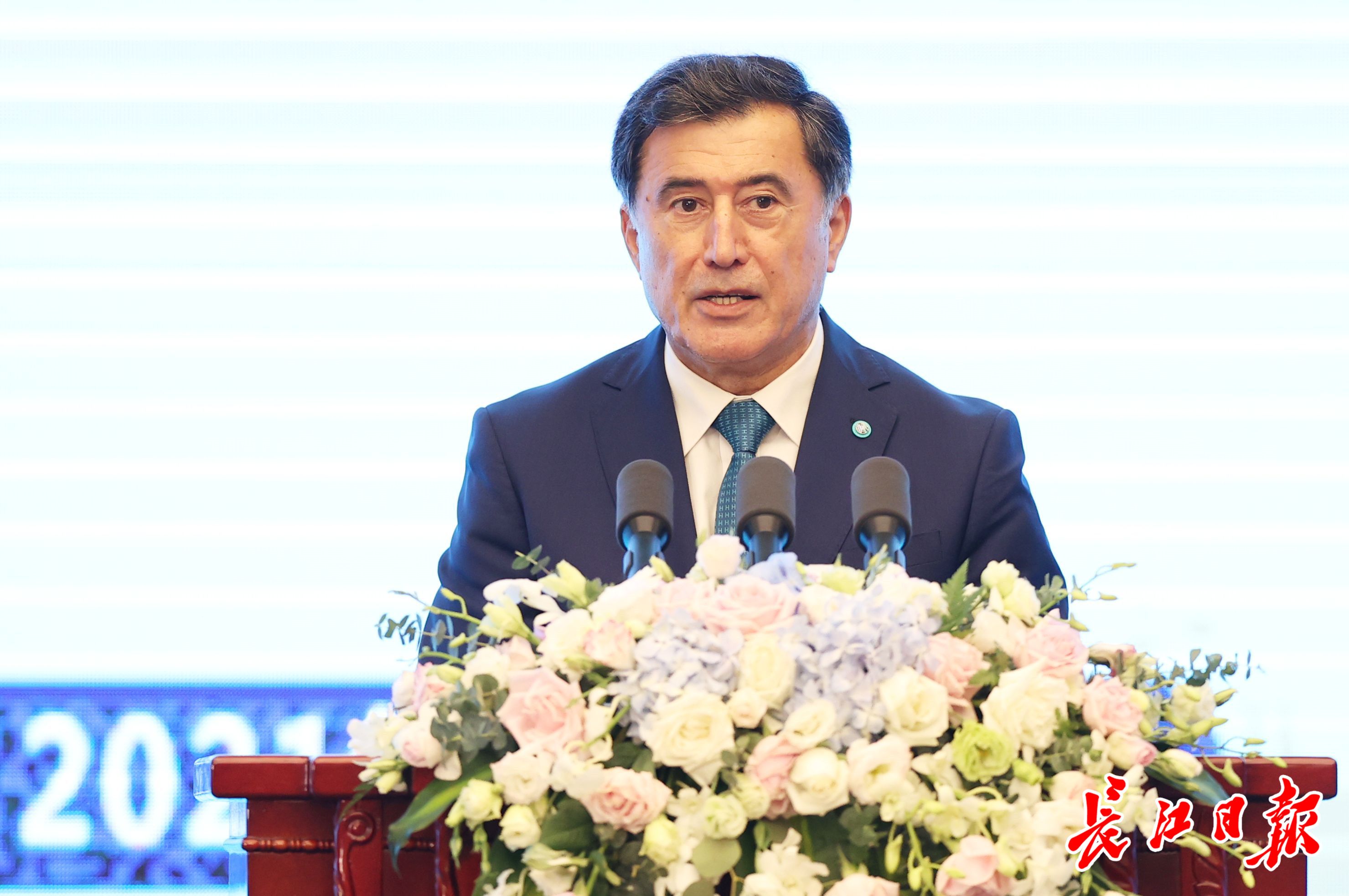 上海合作组织秘书长弗拉基米尔·伊玛莫维奇·诺罗夫致辞。长江日报记者苗剑 摄