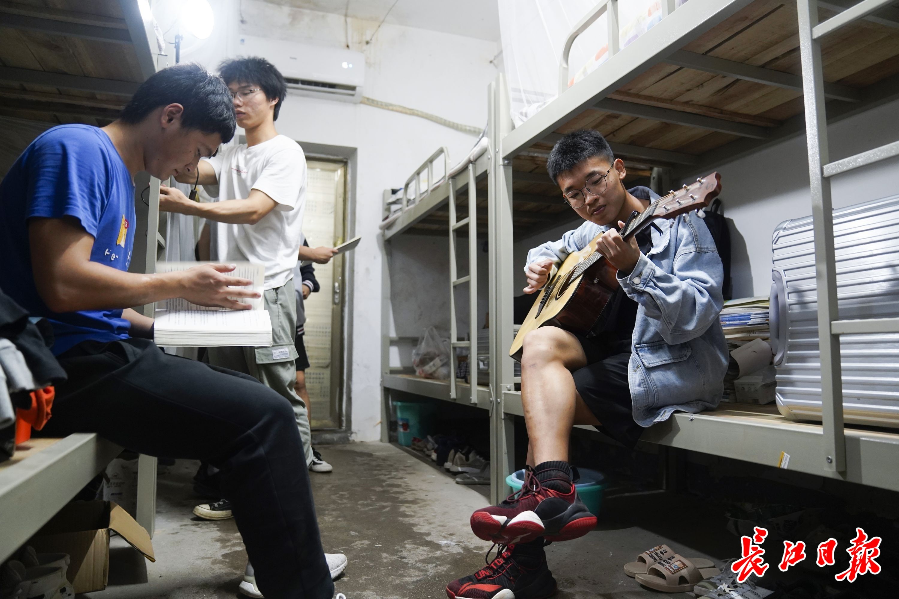 从清晨到夜晚,一天的时间过得很快,高三(6)班的庄志炜晚上10时回到寝室后会抱起他心爱的吉他弹上一曲,室友们爱听他演奏。这时,班主任彭三祥也会来到寝室里和学生们聊聊天,当然都是些很轻松的话题,这是所有高三班主任的日常,也是了解和鼓励学生的方式。