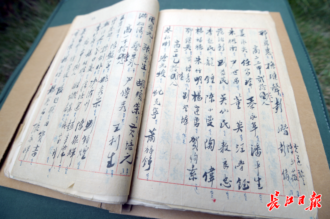 湖北省武昌实验中学档案《关于学生参干名册(一九五〇年—一九五一年)》上,记录着陶伟等学生参军参干的事迹。记者史伟 摄