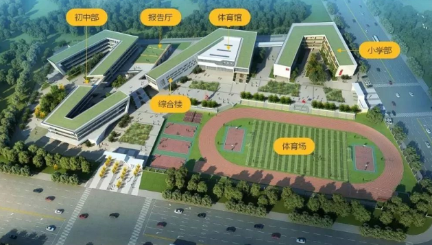 武汉空港新城育才学校规模为48班,总用地面积约54161.71㎡,总建筑面积约38987.48㎡,规划建设1栋4层小学部教学楼,2栋4层中学部教学楼,1栋2层学生食堂及室内体育馆,1栋4层综合楼,1栋1层报告厅,300米跑道体育场等。该校计划今年7月建成交付,9月全面投入使用!