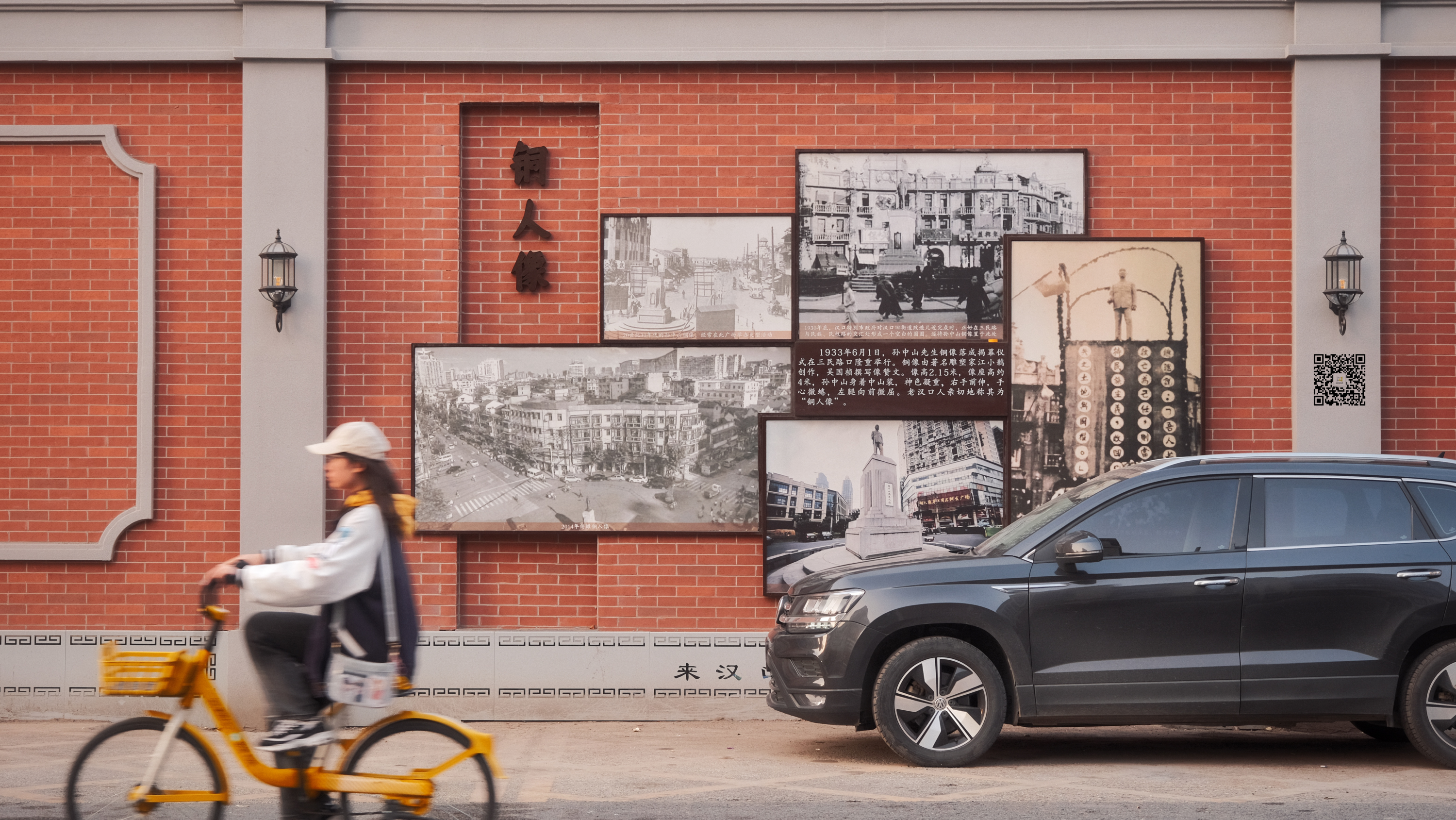 墙上讲述着汉口铜人像周边的历史。