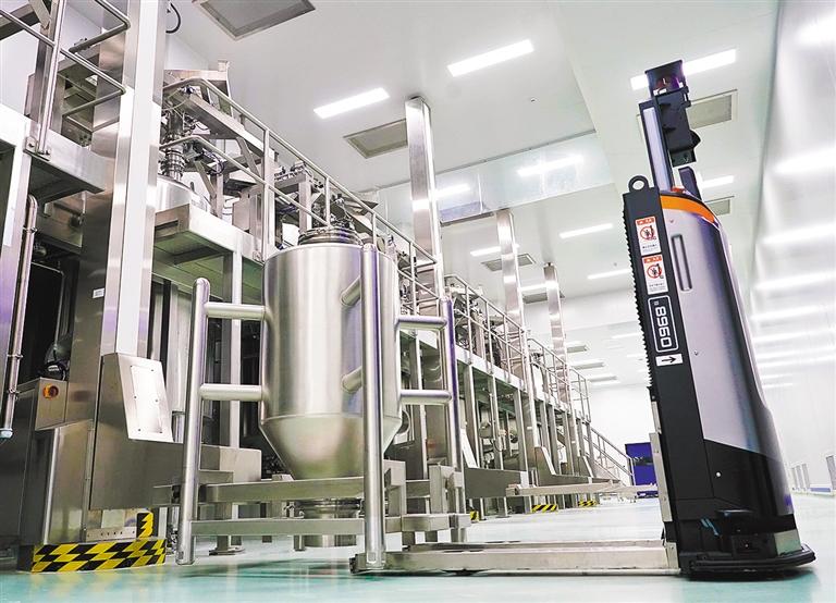 11月28日,武汉禾元生物植物源重组人血清白蛋白洁净化黑灯工厂内,AGV机器人正在工作。